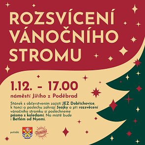 Advent zahájí dne 1.12.2024 v 17.00 hodin slavnostní rozsvícení vánočního stromku na náměstí Krále Jiřího z Poděbrad.